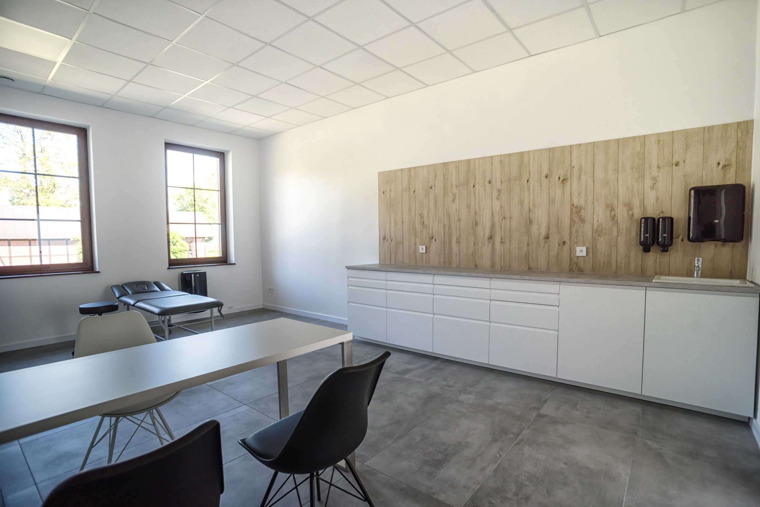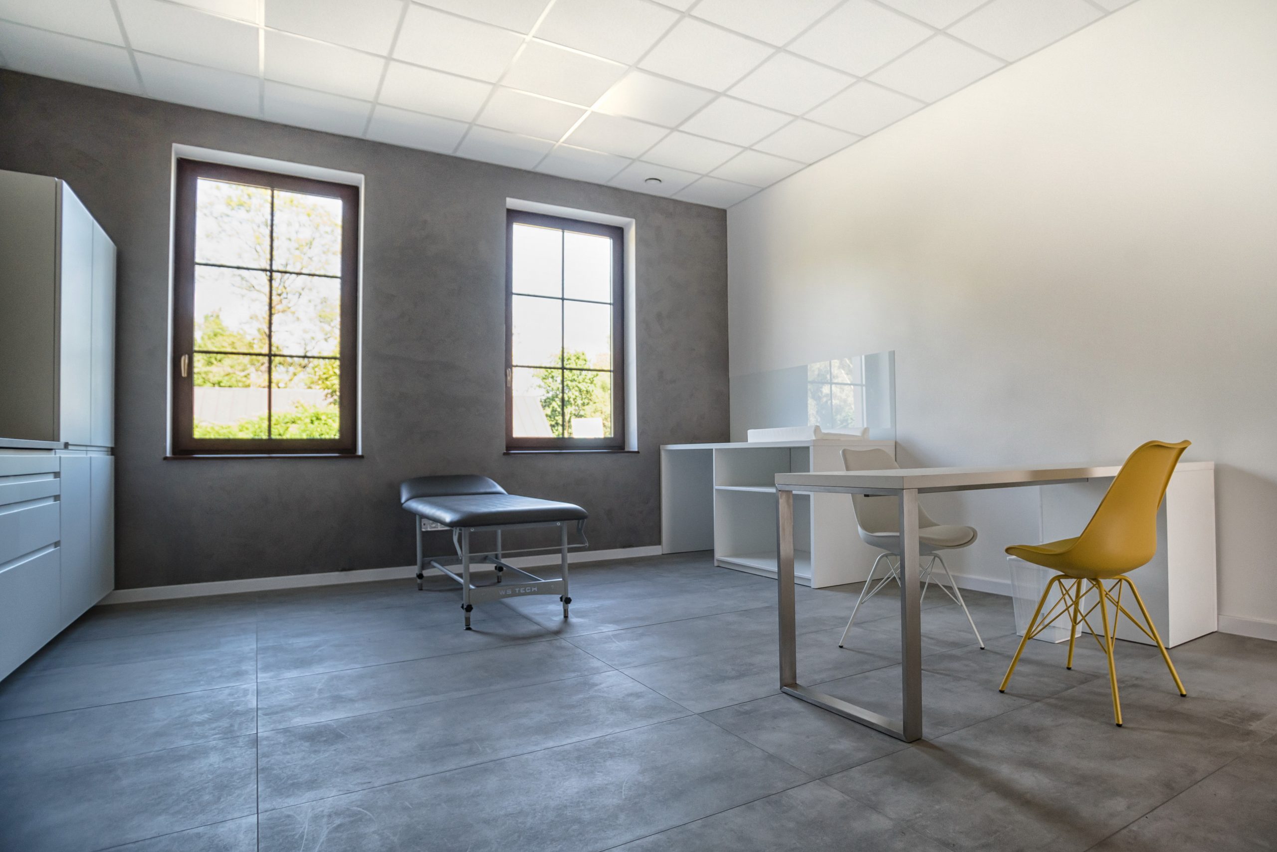 Oferujemy na wynajem dwa w pełni wyposażone, nowoczesne gabinety o powierzchni około 30 m kw. każdy. Na wyposażeniu gabinetów leżanki medyczne (dwu częściowa lub trzy częściowa z otworem na twarz oraz z podłokietnikami). Jeden z gabinetów dodatkowo wyposażony w przewijak dla dzieci oraz wagę niemowlęcą. Zapewniamy mydło, środki do dezynfekcji, papier na leżanki, na przewijak, ręczniki papierowe do rąk. Kwestia niezbędnych narzędzi do pracy, sprzętu oraz innych atrybutów (np. patyczki drewniane, maseczki, fartuchy jednorazowe) pozostają w gestii najemcy. Przed gabinetami znajduje się recepcja oraz poczekalnia dla pacjentów. Posiadamy wyposażone pomieszczenie socjalne do dyspozycji – zamykana szafka na odzież wierzchnią, miejsce do przygotowania i spożycia posiłku, toalety przeznaczone dla personelu.
